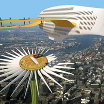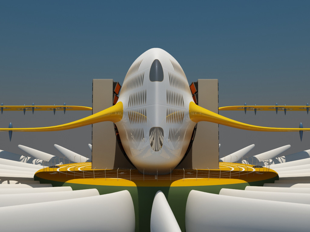 Afin de pouvoir atterrir dans des zones à forte densité urbaine, des tours aéroport d'une hauteur de 278 mètres sont érigées et servent de réceptacles aux avions.