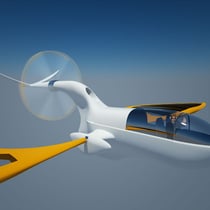 Les 2 hélices sont directement montées sur la queue de l'avion, la prise d'air du moteur se situe au dessus du cockpit. La verrière coulissante permet l'ouverture complète du cockpit. De plus les