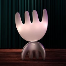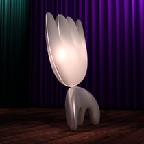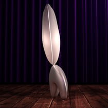 Ce luminaire est constitué de 2 éléments, la partie supérieure de 2 coques thermoformées. La base peut être pleine ou bien réalisée par 2 coques thermoformées C'est un travail autour de la notion de déséquilibre comme le modèle "La main de l'éléphant".